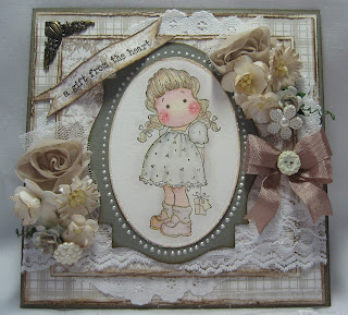 A beautiful card with natural colours & shades and ''white'' Tilda, with the right card stock Tilda can look stunning not coloured.